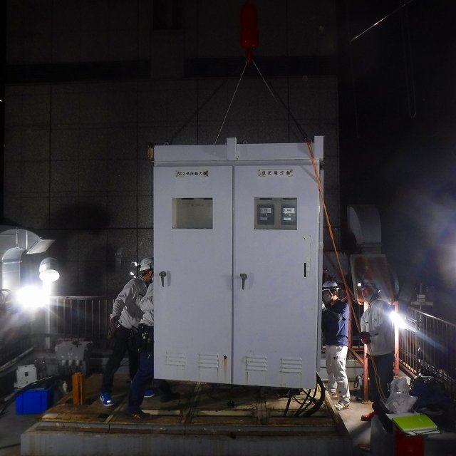 キュービクル更新工事 2023/05/21 都内の有名繁華街にあるテナントビルの屋上キュービクルを更新しました。 夜中でも沢山の人やタクシーが行き交う交差点を警備さんと協力して交通誘導し、 おかげさまで事故無く朝の営業開始に間に合うよう送電出来ました。